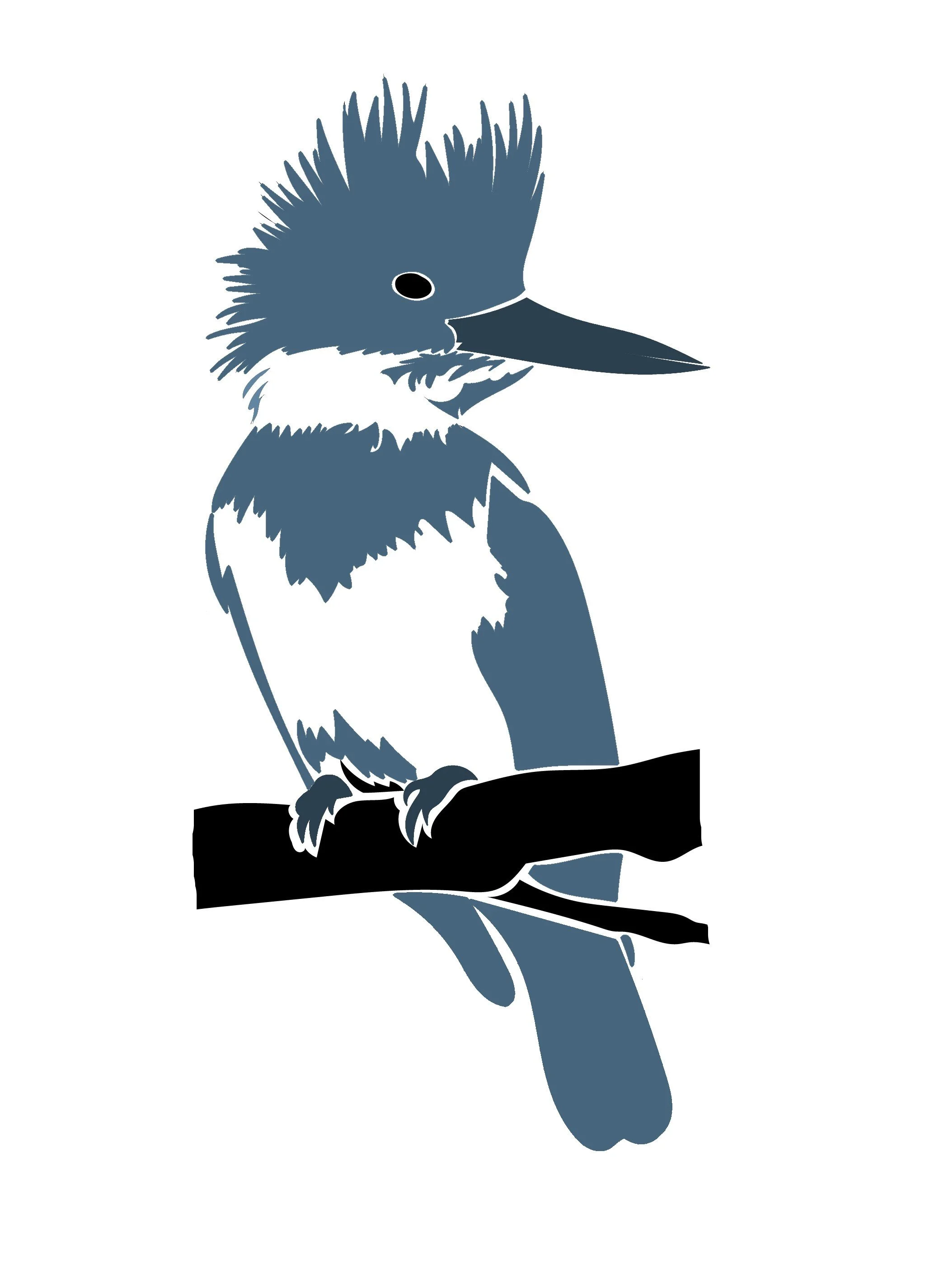 Belted Kingfishers are described as “… large headed birds with a shaggy crest. They spend much of their time perched alone along the edges of streams, lakes, and estuaries, searching for small fish.”